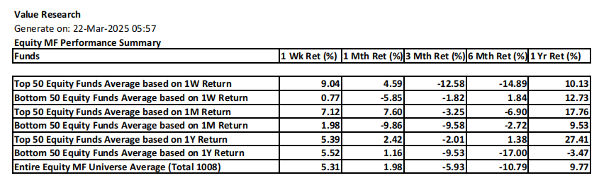 Another 50% will be invested till April 10th, as clear leadership with consistency of performance is set by the weekly Top 50 reports. (You do not see much of consistency of performance in this report as majority of fund managers too are surprised and yet to act with a sense of conviction. Why do I say that? Thursday DIIs had net sale while FIIs had net buys.).